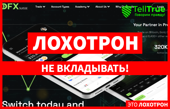 Примером мошеннического проекта, выданного за надежную и лицензированную посредническую компанию, является лохотрон DFX-Suisse. Это недавно созданный проект, что выглядит дешево и примитивно, но его мошенники пытаются выдавать за надежную, авторитетную компанию с лицензией, что к правде отношения не имеет.
