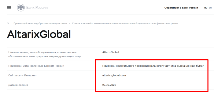 Примером нечестного брокерского проекта, что обманывает и кидает обычных людей, назвать можно ресурс AltarixGlobal. Данная платформа появилась не так уж давно, выглядит примитивно и дешево, правда, ее пытаются называть престижной и проверенной компанией, что к реальности отношения не имеет даже малейшего.