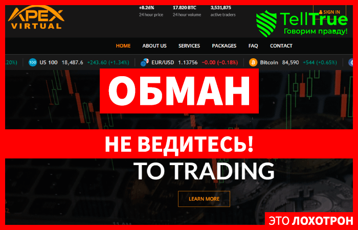 Проект Apexvirtual – пример циничного лжеброкера, что обманывает простых людей. Эта платформа была основана менее одного года назад и, похожих на нее сайтов есть очень много. понимая данный факт, пользователям стоит стать максимально осторожными, иначе они попадут на обман и потеряют средства.