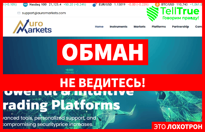 Примером брокерской компании, что маскируется под проверенного посредника с ярко выраженным желанием кинуть на деньги, является проект Auromarkets. Ресурс был создан недавно, а красивая реклама его основателей гласит о солидности компании и ее ориентированности на клиентов. Данная организация пытается привлечь максимум внимания красивой рекламой, а еще приоритетно ориентируется на новичков.