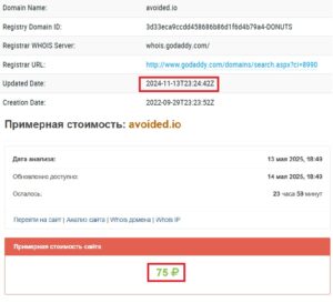 Кстати, сайт действительно «молодой». Несмотря на то, что домен зарегистрирован еще осенью 2022 года, реально начали им пользоваться только 13 ноября 2024. То есть активности никакой почти два года. Просто ждали подходящего момента, очевидно. Стоимость этой дешевой подделки составляет всего 75 рублей. Согласитесь, это ничтожно мало для нормальной компании.
