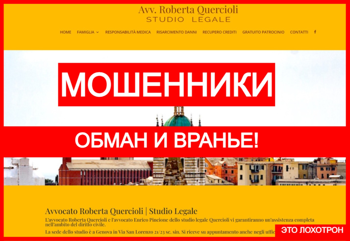 Каждый день на просторах интернета всплывают новые юридические площадки, которые, на первый взгляд, обещают помощь, а на деле оказываются самой обычной ловушкой. Все работает по привычной схеме: мошенники с AVV. ROBERTA QUERCIOLI Via S. тесно связаны с псевдоброкерами, получают базы контактов и начинают навязывать свои «услуги». Звонят, пишут, убеждают, что смогут вернуть украденные деньги. Причем абсолютно честно, без предоплат. Верится? Вот и зря. Ведь реальность совершенно иная.