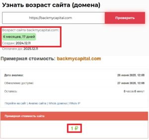 Вы, возможно, удивитесь, но домен площадки обошелся его владельцам всего в 1 рубль. Не самая впечатляющая сумма, согласитесь, для организации, которая якобы решает юридические вопросы международного уровня. Более того, дата создания ресурса — 11 декабря 2024 года, срок деятельности составляет 6 месяцев и 17 дней. Все говорит о том, что BackMyCapital — это продукт, рассчитанный на короткий срок жизни: схватить как можно больше и исчезнуть.