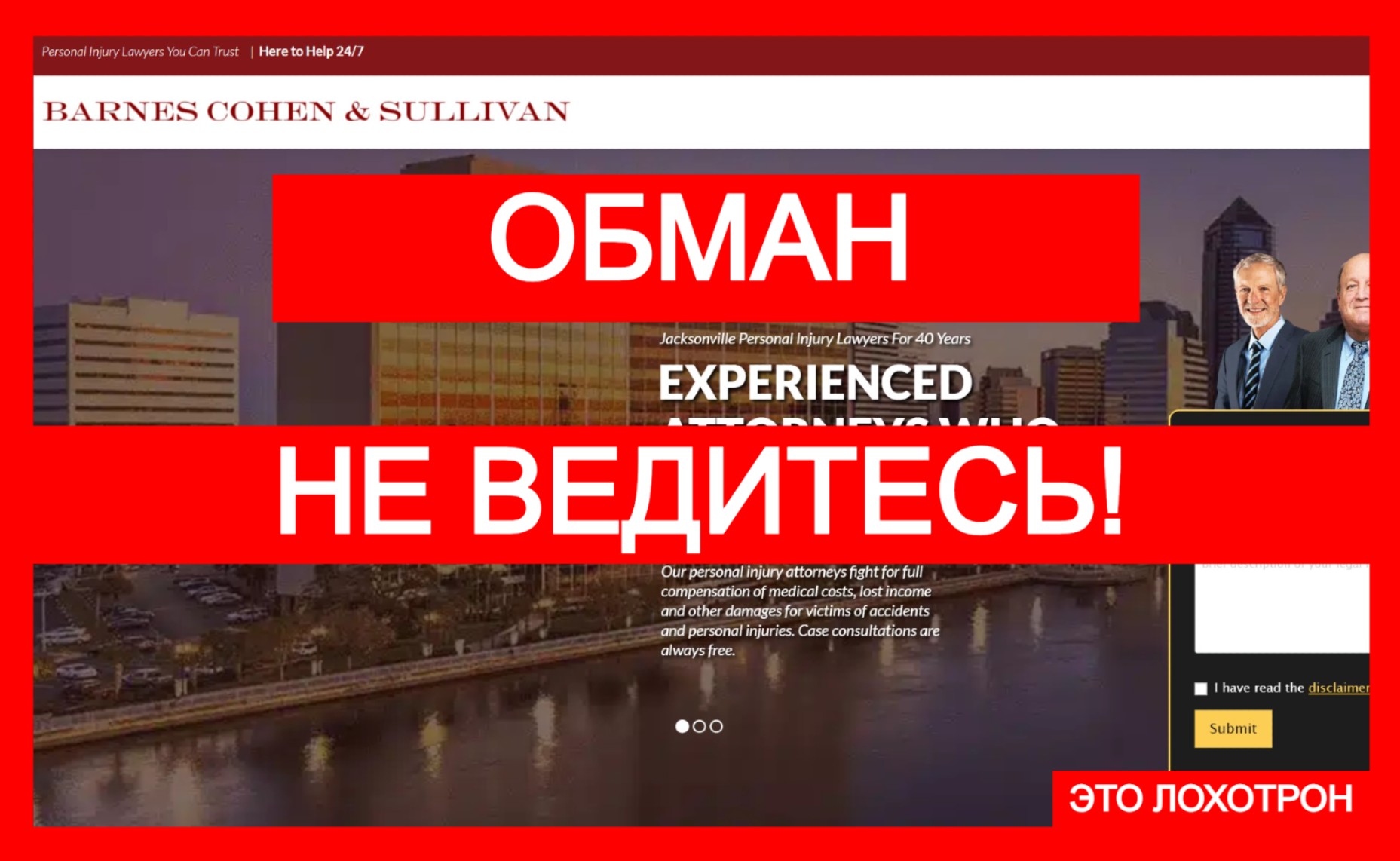 Давайте разберемся вместе. Потому что здесь, честно говоря, все плохо. И если вы хотя бы на секунду подумали, что Barnes Cohen & Sullivan — это инновационная правовая платформа, созданная, чтобы помочь пострадавшим, мы советуем вам остановиться и все пересмотреть. Прямо сейчас.