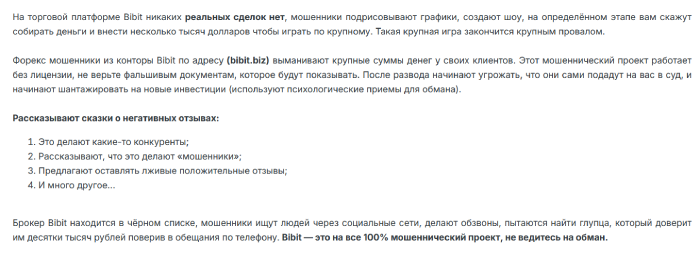 Что касается настоящих отзывов о Bibit, оставленных экспертами и трейдерами, то ничего положительного в них нет. именно поэтому стоит держаться подальше от примитивного лохотрона, да бы не стать жертвой его обмана. таких мошенников, как нынешние герои наши, есть действительно максимально много и, стоит быть бдительными.