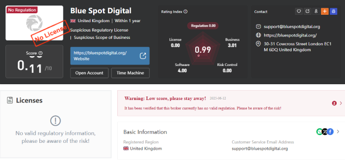 Проект Blue Spot Digital – это пример брокерской компании, созданной для циничного обмана клиентов. Данная организация появилась сравнительно недавно и, пользователям рассказывает о престижном своем положении, но на самом деле это обман. заявляет проект о прописке на территории Великобритании и, логично, там должен быть лицензирован, но такого нет и в помине. Именно поэтому от мошенников стоит держаться подальше.