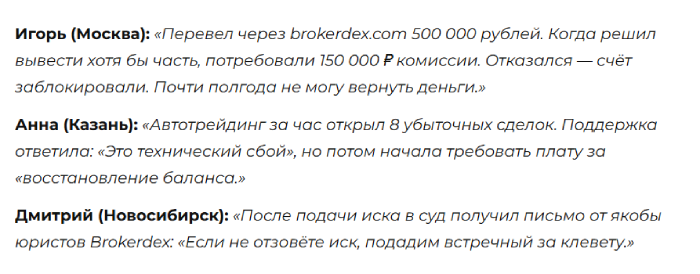 Очередные мошенники запустили свежий брокерский лохотрон. Они громко написали на главной странице сайта, что их проект – это «Трейдинг-портал на мировые рынки», но не стоит верить данной фразе. Лжеброкер Brokerdex (brokerdex.com) выдает себя за того, кем на самом деле и не является, так что сотрудничество с ним не может быть результативным. Почему эта компания не заслуживает внимания трейдеров, ниже мы расскажем в деталях.