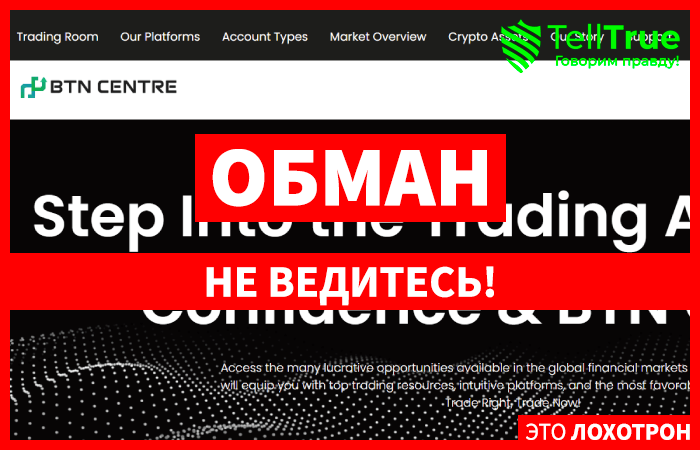 Примером фальшивого брокера, обманывающего простых людей, является организация BTN Center. Появился этот проект достаточно недавно, у его сайта мало посетителей, но клиентам рассказывают о квалифицированной работе организации, ее профессионализме и ориентированности на клиентов. Правда, верить всему этому не стоит, ведь перед нами не хороший брокер, а обычные мошенники, что банально кидают простое население.