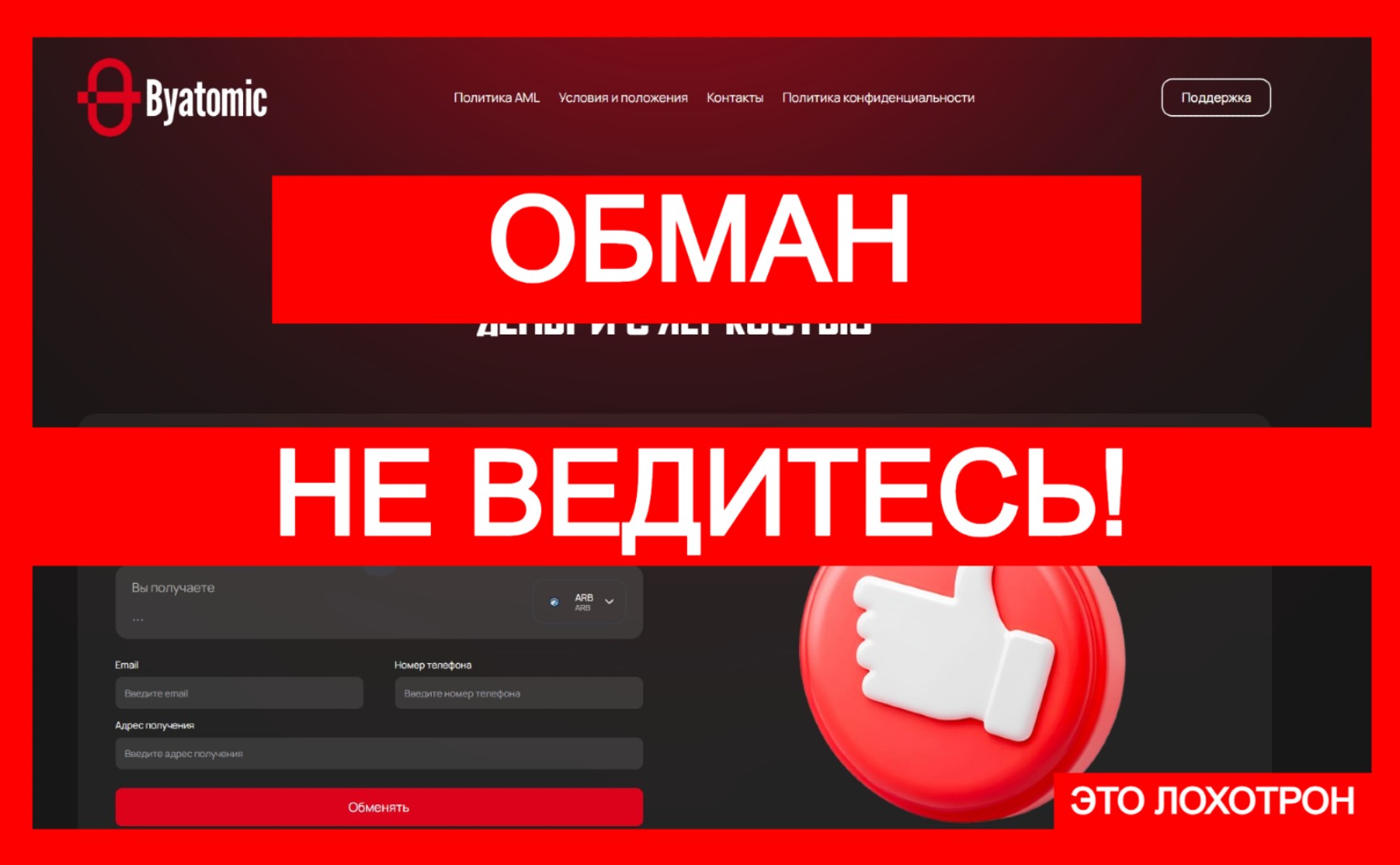 Сложно представить, но даже в 2025 году находятся те, кто верит в сказки. Причем не в милые детские, а в весьма циничные и опасные — те, что рассказывают так называемые «обменные платформы». Одна из них — Byatomic. Казалось бы, перед вами добротный сервис, где все на месте: обмен в пару кликов, приятный дизайн, уверенные формулировки вроде «надежно», «быстро», «безопасно». Но стоит копнуть глубже — и реальность, как это часто бывает, оказывается совсем иной.