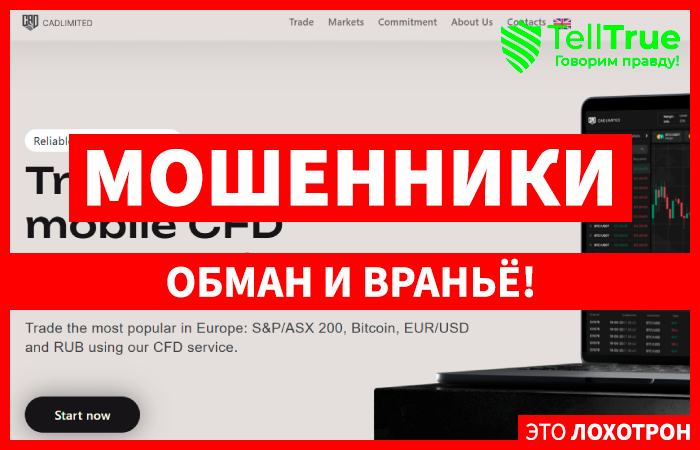 Примером брокерского мошеннического проекта, что был создан для кидалова и выманивания денег, является организация Cadlimited. Данная платформа была создана наглыми и примитивными мошенниками недавно, но ее выдают за брокерскую компанию с солидным стажем. История проекта, его контакты и данные о лицензированной работе не являются подлинными и, это факт.