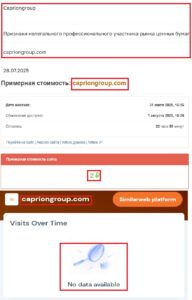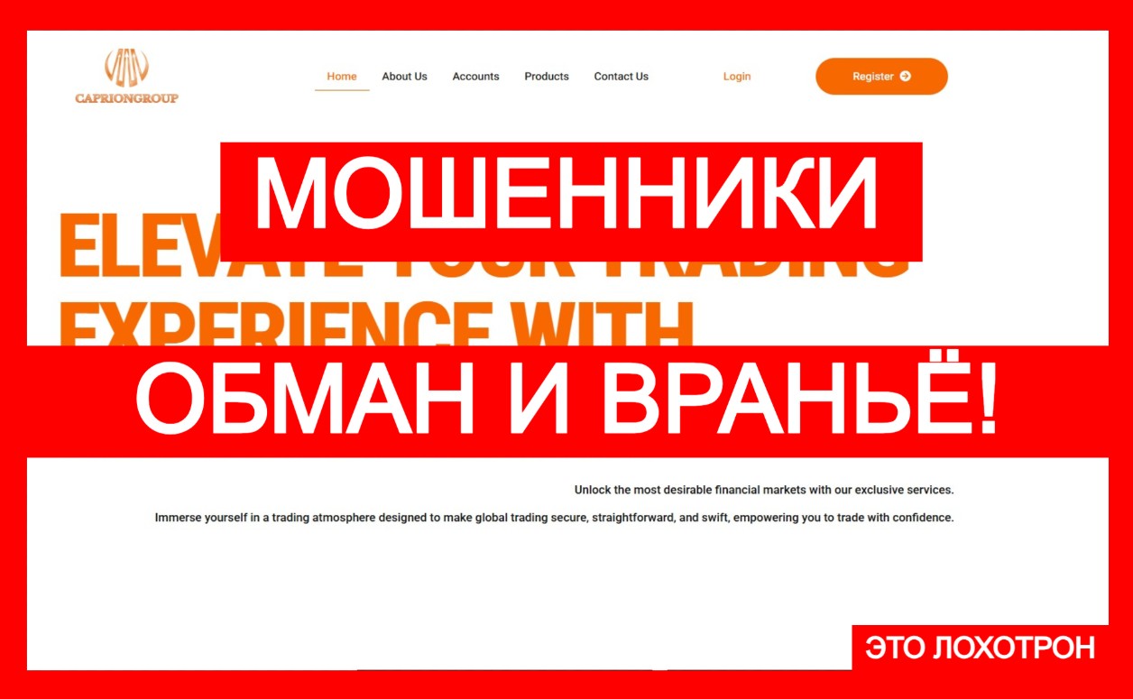 Под видом солидного инвестиционного посредника мошеннический сайт Caprion Group (capriongroup.com) обещает высокую прибыль от торговли на международных рынках. Обещания красивые — «ваше финансовое будущее начинается здесь», «мировая платформа для трейдинга», — но на деле мы имеем дело с типичной лжекомпанией, уличенной в нелегальной деятельности.