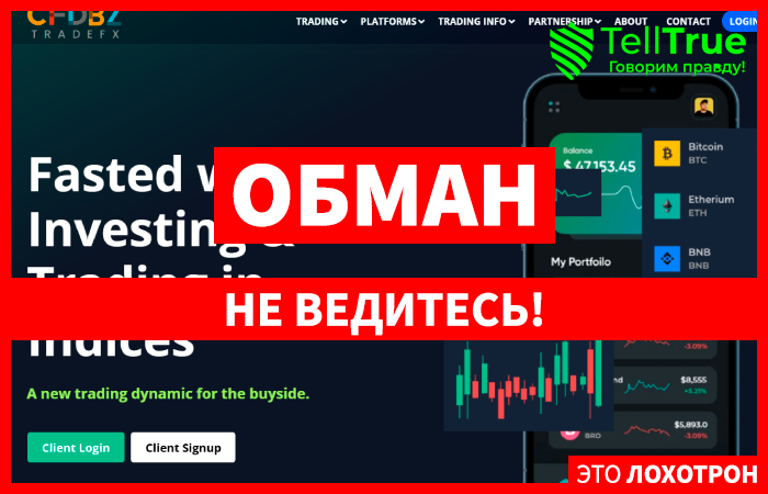 Брокер CFDBZ TreadeFX – пример мошеннической организации, что была создана недавно для выманивания денег. Клиентам рассказывают о больших выгодах сотрудничества с биржевиком, а на самом деле, он банальный мошенник, обманывающий простых людей. Тут рассказывают про массу выгодных инструментов для торговли, низких комиссиях и качественной поддержке, а на самом деле, просто грабят.