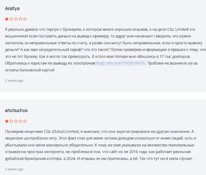 В интернете удается отыскать неодиночные отзывы о CGL Limited негативного характера, что лишний раз дает догадаться о мошенничестве организации и ее истинных намереньях. Именно поэтому данный нерегулируемый проект рекомендовано обойти стороной и, он однозначно заслуживает черного списка.