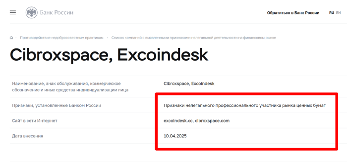 Данные относительно легальности и прописки проекта не являются подлинными, соответственно, стоит клиентам держаться от организации, как можно дальше. перед нами банальный лохотрон, обманывающий людей очень быстро, в силу чего, Центробанк добавил данную организацию в свой черный список.