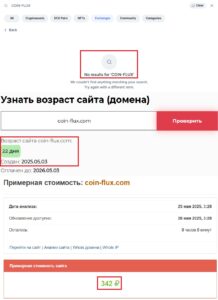 Можно ли как-то проверить эту «биржу»? Конечно. И это очень просто. Существуют легальные инструменты, такие как CoinMarketCap. Вы, возможно, уже слышали о нем. Это своего рода глобальный каталог криптоплатформ — там видно, кто есть кто. И что вы думаете? Вбиваем COIN-FLUX — и, как вы, наверное, уже догадываетесь, ничего. Просто ничего. Ни следа. Это должно стать тревожным звонком. Даже не звонком — сиреной.