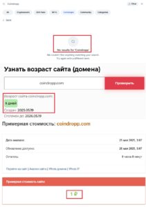 Мы потратили время, чтобы разобраться, что это вообще за структура. Как выяснилось, проект совсем свежий. Зарегистрирован буквально 6 дней назад. Домен стоит сущие копейки — один рубль. Это не тот случай, когда кто-то серьезно вкладывается в платформу и планирует долгосрочную работу. Это скорее напоминает временную витрину. Собрать побольше — и исчезнуть. Если вы хотите очень быстро проверить — а стоит ли доверять той или иной бирже, то мы рекомендуем вам использовать сервис CoinMarketCap. К сожалению, в рейтинге этой платформы не указывается Coindropp