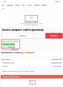 И вот еще: эта биржа работает всего 2 месяца и 13 дней. Да, она появилась 28 февраля 2025 года. Это даже не платформа, это тестовая оболочка для обмана, не больше. А стоимость домена? Ровно ноль рублей. Мы не преувеличиваем. Это реальная оценка. Что она говорит о серьезности проекта? Да, собственно, все. Настоящие биржи так не делают.