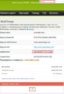 И, казалось бы, можно было бы просто проигнорировать очередную подделку. Но ведь люди действительно туда отправляют деньги, надеясь на честный обмен. Мы обратили внимание на даты: домен зарегистрирован в мае 2002 года, но реальную активность начал проявлять только в мае 2024. Все говорит о том, что использован старый домен, чтобы создать видимость стабильности и опыта. Классическая схема. А стоимость ресурса? Да вы серьезно — ровно один рубль. Именно столько сервисы оценивают этот «обменник будущего».