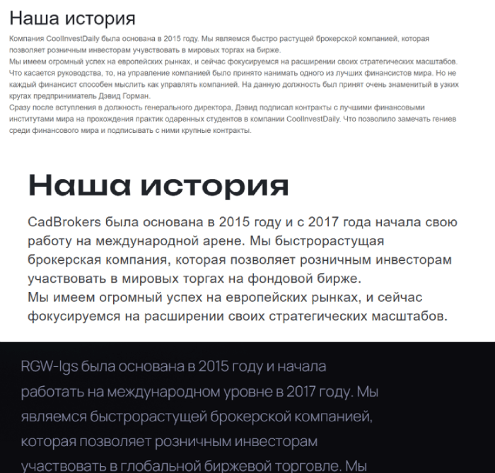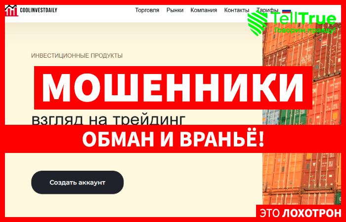 Примером типичного мошеннического проекта, выдающего себя за престижного брокера, является организация Coolinvestdaily. Мошенники пишут о том, что проект был создан в 2015 году, работает прозрачно и лицензировано, но перед нами мошенники с черного списка Центробанка.