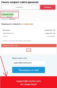 Давайте начнем с сайта corylacs.pro. Он выглядит дешево и шаблонно, будто его сделали на скорую руку, лишь бы запустить процесс выкачивания денег. Никакого уникального функционала, одни стоковые изображения и громкие слова о многолетнем опыте. Правда, если проверить домен, выяснится, что проекту всего 5 месяцев и 11 дней. И они уже называют себя лучшими в отрасли? Забавно. Такие компании, как Corylacs, использовали тот же самый подход: создали копию, поменяли пару цветов, заменили логотип — и вот перед нами «новый брокер». Однодневки, которые живут максимум год, пока их не разоблачат.