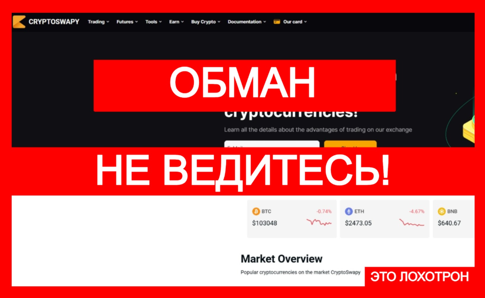 Бывает, встречаешь в интернете проект, который на первый взгляд кажется чем-то стоящим — стильный сайт, громкие заявления, обещания простого заработка без лишней головной боли. Именно так себя позиционирует CryptoSwapy — очередная «криптобиржа», созданная, по всей видимости, не для помощи инвесторам, а для того, чтобы как можно быстрее вытянуть из них деньги. Казалось бы, все красиво упаковано. Но как только начинаешь копать глубже — фасад начинает трещать по швам.