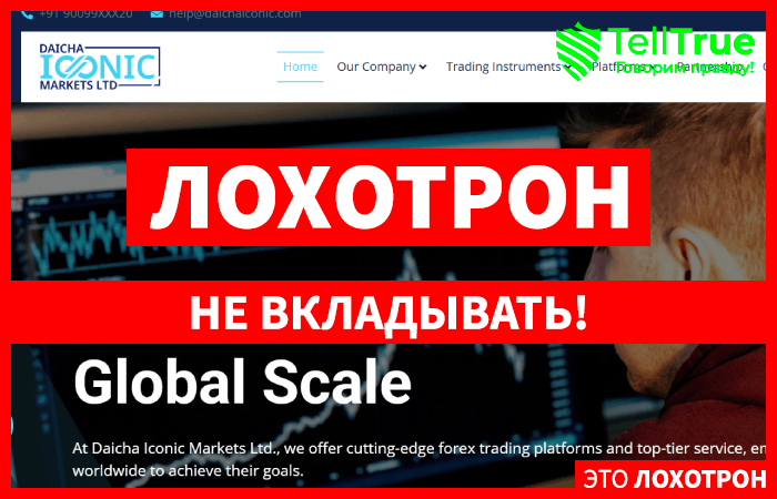 Примером типичного липового брокера, создавшего примитивный лохотрон для кидалова, является проект Daicha Iconic Markets Ltd. Данную организацию выдают за престижного и проверенного брокера, что имеет лицензирование, но на самом деле – это обман. Прое5кт даже не имеет реальной прописки, ведь перед нами типичный лохотрон.