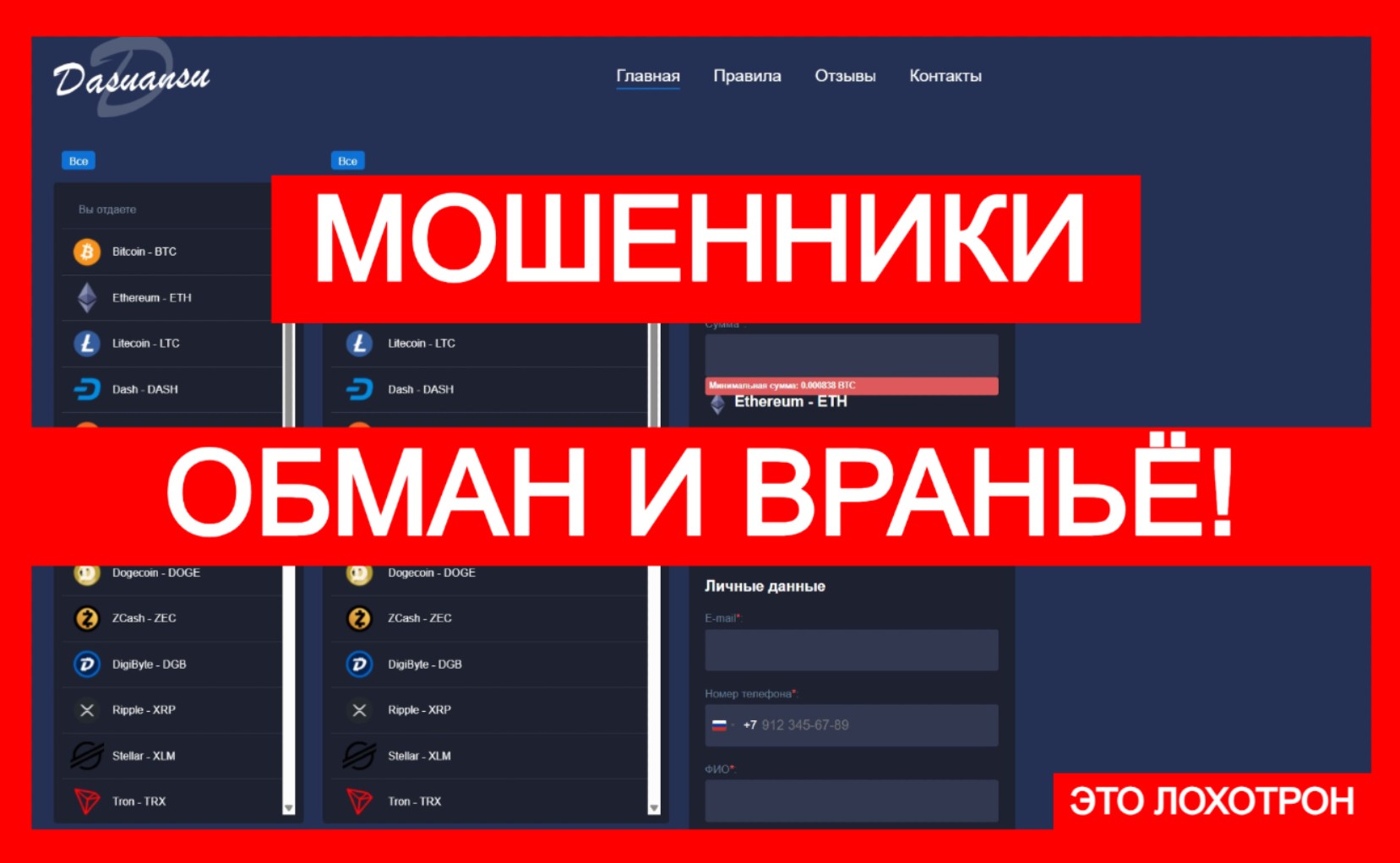 Вам когда-нибудь приходилось сталкиваться с сайтом, где все вроде бы на месте, а доверия — ноль? Так вот, dasuansu.com — как раз такой случай. С первой же минуты становится ясно: перед вами не инструмент для обмена, а банальная ловушка. Сайт собран наспех, с помощью заезженного шаблона, который уже сто раз использовался другими аферистами. Картинки какие-то липовые, тексты написаны как под копирку. И, что самое главное — никакого настоящего обмена там просто не происходит.