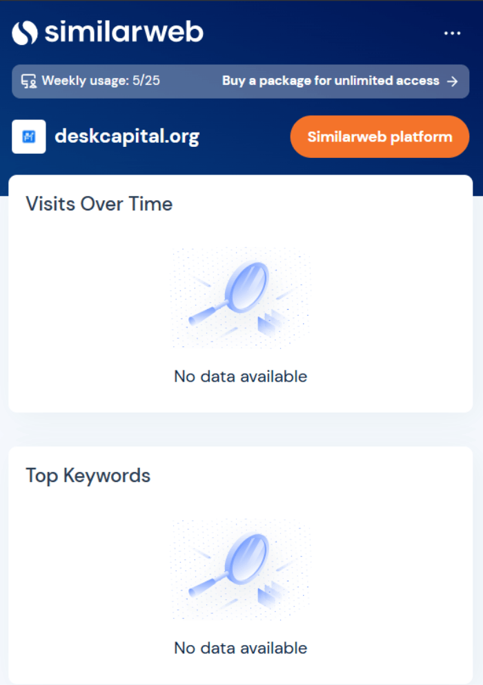 Также мы посмотрели историю сайта на платформе Веб Архив (https://web.archive.org/web/20250000000000*/deskcapital.org), получили только подтверждение того, что проект молодой, никому неизвестный и, занимается кидаловом.