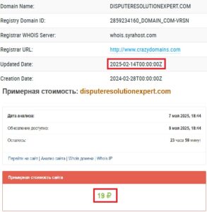 И вот тут мы подходим к самой сути. Проект Dispute Resolution Experts базируется на домене disputeresolutionexpert.com. Мы, признаться, не ожидали от них многого, но даже по меркам сомнительных сайтов — это просто провал. Простенький, дешево сляпанный шаблон, который можно купить в интернете буквально за копейки. Они даже не стали ничего придумывать — просто сменили цвета, шрифт, вставили пару пафосных слов — и вуаля, “юридическая помощь”.