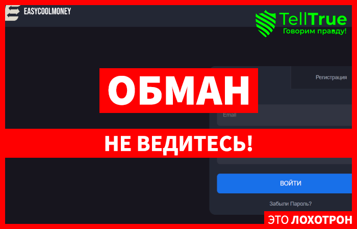 Примером типичного мошенника брокера, что пытается выдавать себя за надежную организацию, но делает это с целью обмана, назвать можно проект EASYCOOLMONEY. Данная организация решила сразу не посвящать клиентов во все нюансы сотрудничества и торговые условия, а предлагает сначала зарегистрироваться и войти.