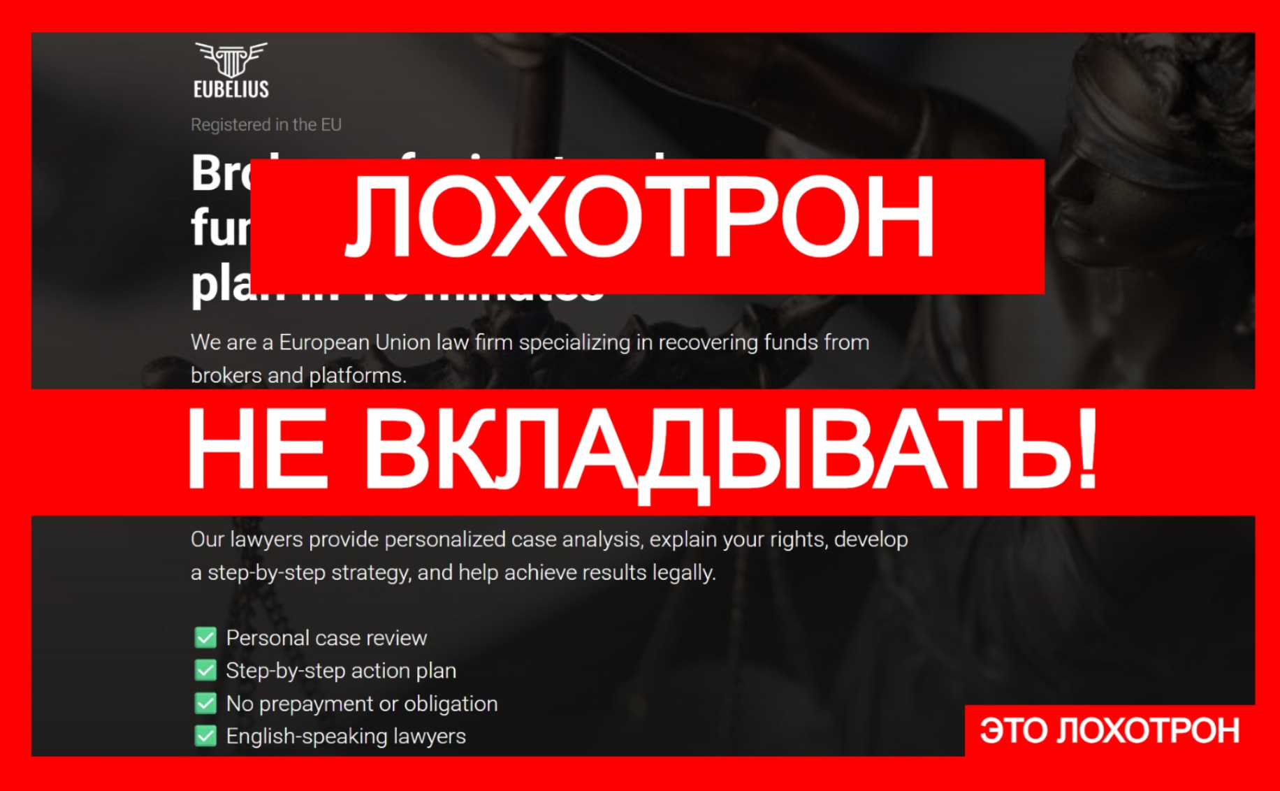 К сожалению, нередки случаи, когда доверчивые пользователи оказываются в финансовых сетях мошенников. И первое, что приходит на ум в такой ситуации — обратиться к юристам, которые обещают помочь вернуть утраченные деньги через процедуру чарджбэка. Однако стоит ли верить всем подряд? Не каждый, кто называет себя юридической компанией, действительно работает по закону. Взять, к примеру, проект под названием EUBELIUS.