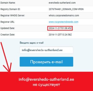 Контакты на сайте есть, формально. Почта, телефон, адрес — все вроде бы указано. Только вот… попробуйте дозвониться. Ответа нет. Почтовый ящик info@eversheds-sutherland.ee — фейковый. Адрес? Вероятнее всего — скопирован с чужого сайта. Создается ощущение, что они изначально не хотят общаться. Ну а зачем, если главная цель — получить с вас деньги и исчезнуть?