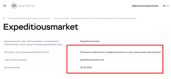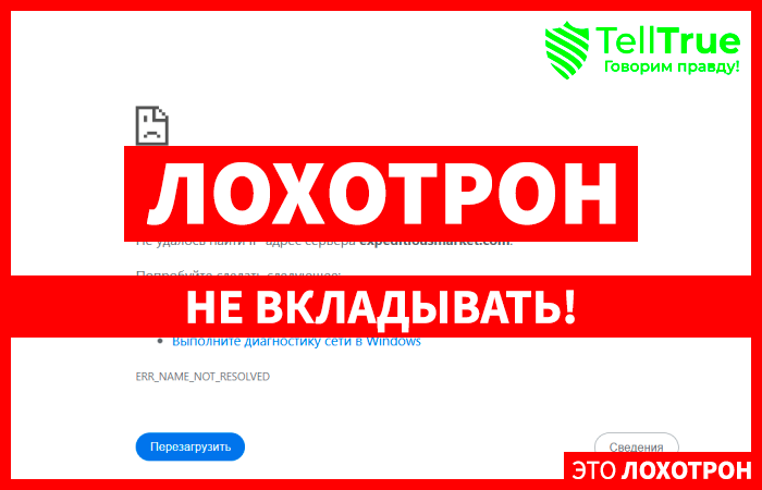 Организация Expeditiousmarket – пример фальшивого брокера, что обманывает простых людей на липовом терминале. Реклама сайта достаточно красивая и уверенная, клиентам предлагают многочисленные инструменты, доступ к лучшим рынкам, инновационный терминал и профессиональную поддержку в необходимый момент, но все это сказка и не более того.