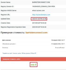 Интересно, что формально домен зарегистрирован еще в 2015 году. Это должно было создать иллюзию «долгой истории». Но активная работа началась только с января 2025-го. И, конечно, не с юридическими консультациями, а с обманом. Мошенники просто купили старый домен — обычная практика. Зачем? Чтобы сложнее было проверить, кто они и откуда.