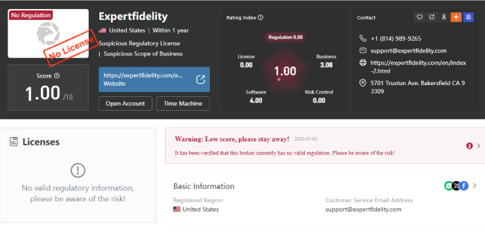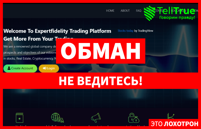 Примером брокера, что выдает себя за проверенную компанию, но на практике просто обманывает, является организация Expertfidelity. Данный проект был создан наглыми мошенниками менее трех месяцев назад, но выдают его за надежную и проверенную брокерскую компанию. Мошенники рассказали о выгодных активах, инновационной платформе, безупречной поддержке, но это лишь обман и не более того.