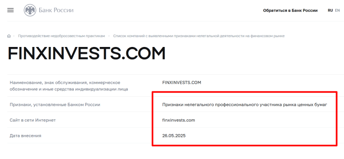 Данную шарлатанскую контору Центробанк отправил в черный список, ведь ее создали мошенники для выманивания финансов. Именно поэтому стоит держаться подальше от компании, тем более, когда ее правила прописаны против клиентов. Вывести средства с FINXINVESTS.COM вообще нельзя, этого вообще тут не предусматривалось, ведь торговые процессы банально имитируют.