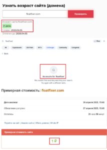 Мы провели проверку проекта с помощью авторитетных сторонних сервисов. Что показал анализ? FloatFixer существует всего 21 день — абсолютно ничтожный срок для серьезной инвестиционной платформы. О надежности в таком случае не может быть и речи. Стоимость домена тоже говорит сама за себя: один рубль. Прямо скажем, сумма, которая точно не ассоциируется с крупной и надежной биржей. Все это напоминает типичную схему работы конторы-однодневки, задача которой — собрать побольше средств и исчезнуть без следа.