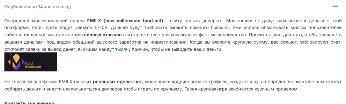 Отзывы о FMILX только подтверждают факт того, что перед нами мошенническая организация и, создана она для обмана простого населения. Такие проекты, как рассмотренный брокерский сайт, на постоянном основании появляются в интернете и, обманывают они людей очень активно.