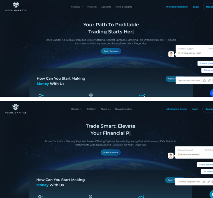 Организация Focuscapital является примером брокерской конторы, что была создана для обмана простых людей. Эта мошенническая контора, была создана пару дней назад и у нее уже есть точные копии. Одной из точных копий является площадка с названием Odeacapital. Такие примитивные сайты очень активно рекламируются в интернете и, соответственно, нужно быть осторожнее, чтобы не попадать на них.