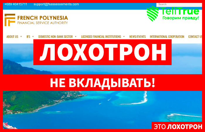 Проект French Polynesia Financial Service Authority является очередным лохотроном, позиционирующим себя, как регулятор французской Полинезии. Это якобы авторитетный надзорный орган, контролирующий услуги небанковского сегмента финансовых услуг, но верить этому не стоит.