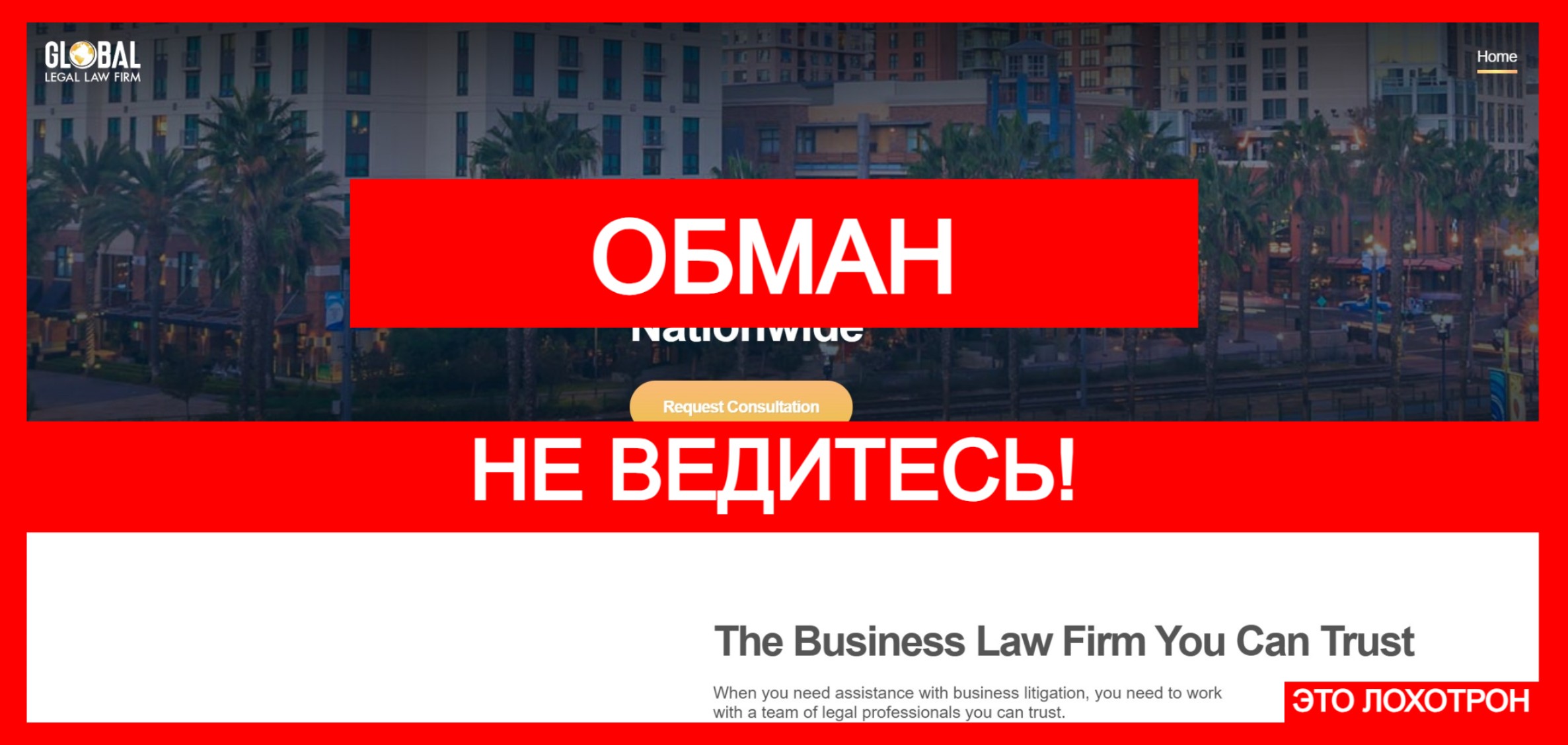 Лжеюристы Global Legal Law Firm не просто не помогают, а еще и выкачивают деньги у тех, кто надеется на справедливость. Разберемся, как именно работает эта афера и почему вам стоит держаться от нее подальше. Сайт компании — www.globallegallawfirm.com. Достаточно взглянуть на него, чтобы понять, что перед нами примитивный шаблон, наскоро собранный ради одной цели — завлечь жертву. Это типичная схема: мошенники покупают готовый макет, немного его подкрашивают, придумывают пару громких слоганов — и вот, перед нами «юридическая фирма международного уровня».