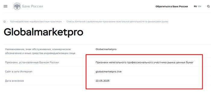 Перед нами якобы проверенная американская компания, а на самом деле, дешевая шарашкина контора, работающая для выманивания денег. Данный проект привлекает людей на терминал, что является имитатором, там пользователям показывают разные торговые процессы и уверяют, что все работает, а по факту клиенты потом не могут вывести средства с Globalmarketpro.