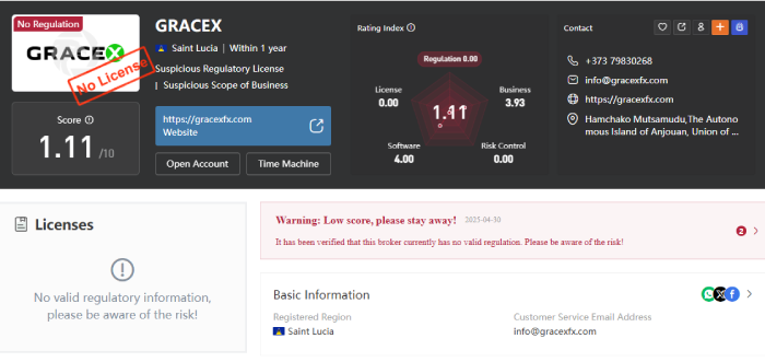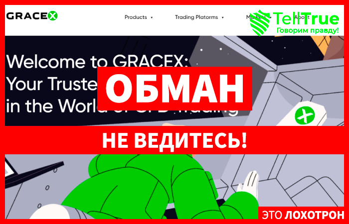 Примером типичного мошенника, что выдает себя за надежного брокера и, просто обманывает население, является организация Gracexfx. Недавно созданный проект, имеющий шаблонный и примитивный дизайн, в интернете очень эффектно и красиво рекламируют. Мошенники создают цепляющую рекламу и просто обманывают обычное население, именно поэтому с ними работать не стоит.