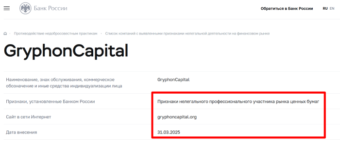 О GryphonCapital отзывы негативные и, каких-то других ожидать не стоило. Если площадка в черном списке регулятора, то и работать с ней категорически нельзя. Количество таких платформ действительно с каждым днем становится все больше. В силу этого, пользователям нужно быть осторожными, чтобы не попадать на обман и не терять свои финансы.