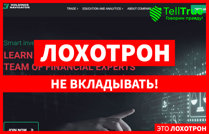 Проект с названием Holding Navigators — это пример брокерского примитивного лохотрона, созданного мошенниками для выманивания денег с простых людей. Эти мошенники менее трех месяцев назад создали свой проект и активно продвигают его на просторах всемирной сети, преследуя единственную цель — кинуть побольше людей на деньги.