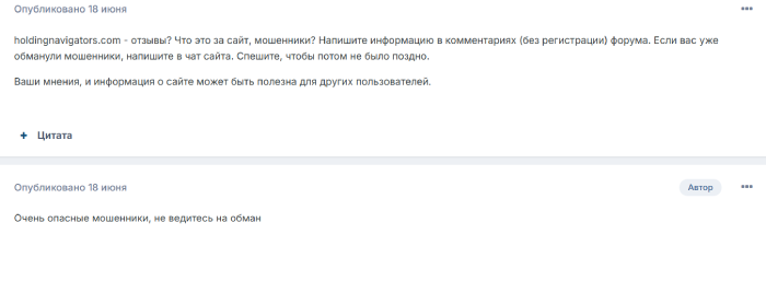 Отзывы о Holding Navigators тоже оставляют негативные, поскольку перед нами мошенническая платформа, основанная с целью обмана простых людей. Таких лохотронов с каждым днем становится только больше и именно поэтому брокеров стоит научиться внимательно проверять, да бы не попасть на обман. Потерять у таких мошенников средства просто, а вот вернуть их практически нереально.