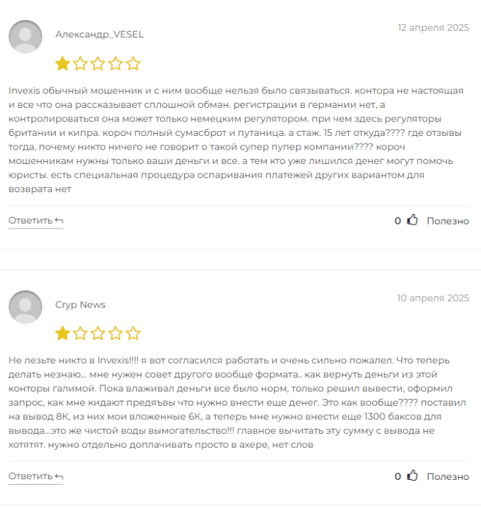Отзывы об Invexis лишний раз только подтверждают факт того, что перед нами типичный лохотрон и, с ним не стоит иметь ничего общего. Такие мошенники умеют красиво рассказывать о себе и, привлекают внимание людей достаточно активно, а когда приходится к выплатам, то оказывается, что их вовсе нет, да и быть не может.