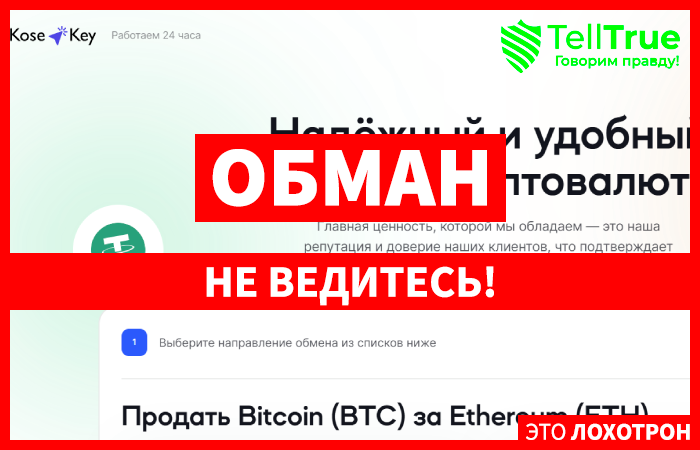 Вывод средств с Kose Key возможен только впервые и то для того, чтобы создать доверие. Далее, естественно, происходит кидалово и выкачивание крупных сумм. Обменников, что обманывают по идентичной схеме, с каждым днем становится только больше и, их стоит обходить стороной.