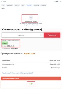 Да, кстати, о доказательствах. Мы, как обычно, проверили все через независимые ресурсы. CoinMarketCap — отличная площадка, где можно найти настоящие криптобиржи, с рейтингами, лицензиями и отзывами от реальных пользователей. Угадайте, кого там нет? Правильно — ни слова о KrypXo. Это уже само по себе наводит на мысль, не так ли? И знаете, что еще? Домен проекта существует 16 дней. Серьезно, разве нормальная компания — особенно в сфере финансов — может возникнуть вчера и сразу же предлагать вам высокий доход?
