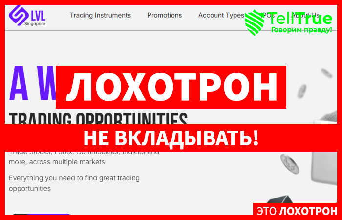 Проект с названием LVL-SINGAPORE-PTE.PRO – это брокерская компания, что была создана для выманивания денег с простых людей. Клиентам пытаются уверенно рассказывать о том, что в ходе сотрудничества с опытным брокером их ждут многочисленные перспективы и лучшие торговые инструменты.